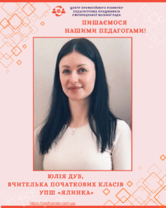 Колектив КУ «Центр професійного розвитку педагогічних працівників» Ужгородської міської ради щиро вітає вчительку початкових класів УПШ «Ялинка» Юлію Дуб із блискучою перемогою в обласному етапі Всеукраїнського фахового конкурсу «Учитель року – 2026». Її професійність, упевненість і педагогічна майстерність стали гідним представленням освітянської спільноти міста на рівні області.